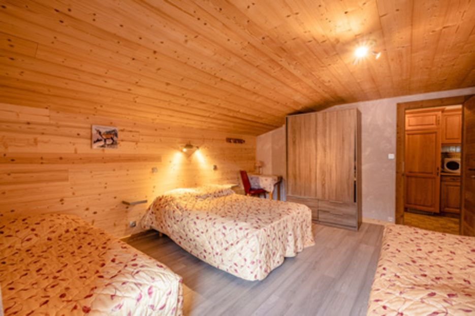 - Une chambre avec un lit 2 places + 2 lits 1 place.